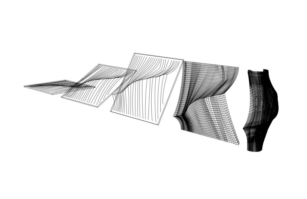 A tiled system of modules, slotted with an undulating topographic pattern, creating a versatile environment. When flat on the ground, can be used as a dance floor, yoga platform, or event site. When separated and erected as pods, the modules provide dwelling units for siting, lounging and refuge from the elements. Perhaps even collecting water from fog, and/or serving as eco-habitat enablers.
